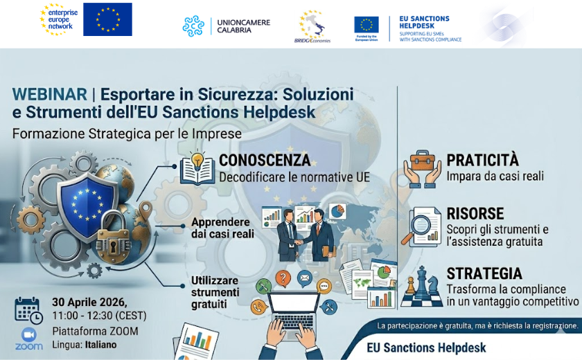 WEBINAR | Esportare in Sicurezza: Soluzioni e Strumenti dell’EU Sanctions Helpdesk -30 Aprile 2026, 11:00 - 12:30